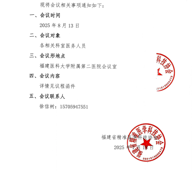 关于召开“2025年福建省血液学会议暨第八届福建省血液肿瘤研讨会”的通知