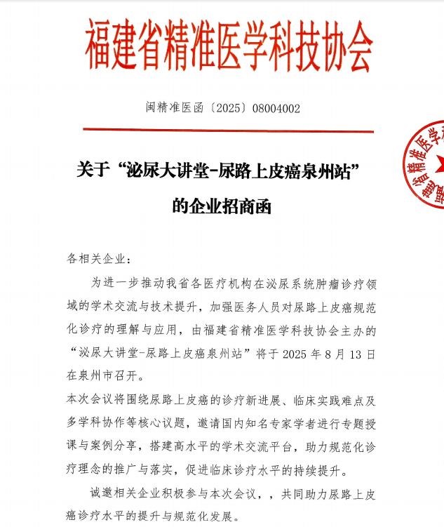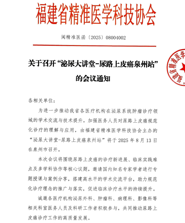 关于召开“泌尿大讲堂-尿路上皮癌泉州站 ”的会议通知