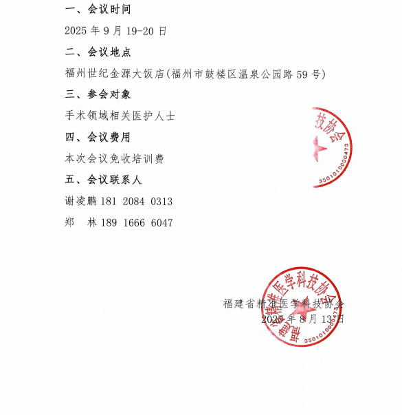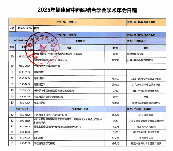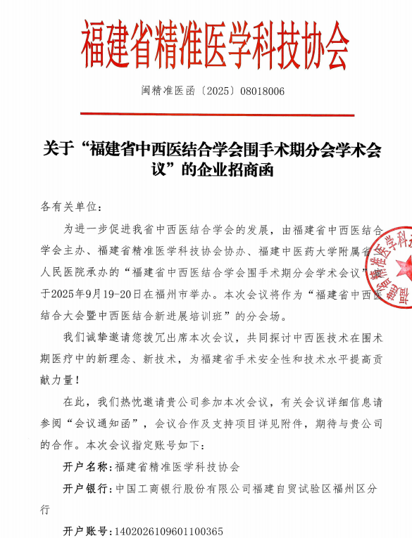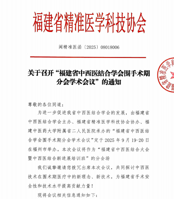 关于召开“福建省中西医结合学会围手术期分会学术会议”的通知